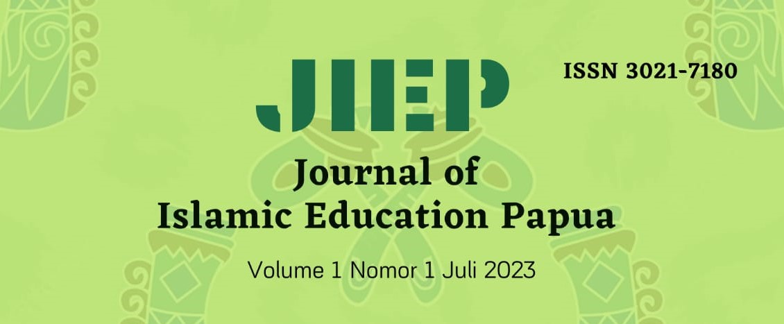 JIEP: Journal of Islamic Education Papua merupakan jurnal ilmiah yang diterbitkan oleh Institut Agama Islam Negeri (IAIN) Fattahul Muluk Papua, dan dikelola oleh Program Studi Pendidikan Agama Islam Fakultas Tarbiyah. Jurnal ini mempublikasikan artikel-artikel ilmiah hasil penelitian, pemikiran, kajian literatur maupun gagasan konseptual dari para dosen, guru, peneliti, akademisi, mahasiswa S1/S2/S3, praktisi, dan pengamat pendidikan yang berkaitan dengan kajian Ilmu Pendidikan dan Pendidikan Agama Islam. JIEP hadir perdana di tahun 2023 dengan frekuensi terbitan sebanyak 2 kali dalam setahun, yaitu pada bulan Februari-Juli dan Agustus-Januari yang dapat diakses secara terbuka. Paper atau artikel ilmiah yang masuk akan direview dengan menerapkan metode double blind peer review dan akan diinformasikan kepada penulis melalui system Open Journal System (OJS).